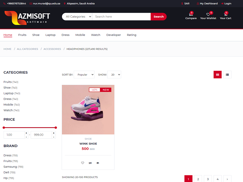 Dynamic E-commerce website